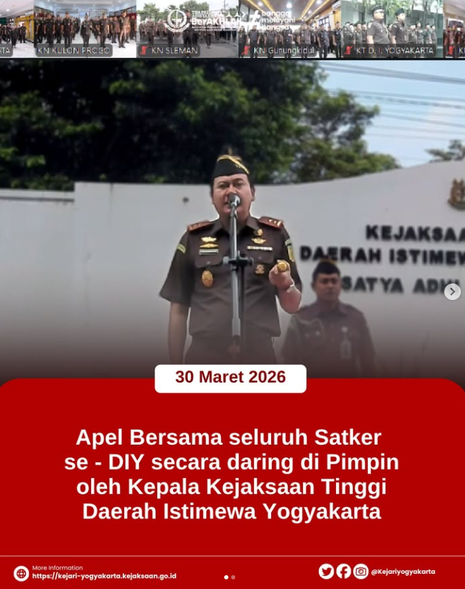 Apel Bersama seluruh Satuan Kerja Kejaksaan se-Daerah Istimewa Yogyakarta dilaksanakan secara daring pada Senin, 30 Maret 2026.