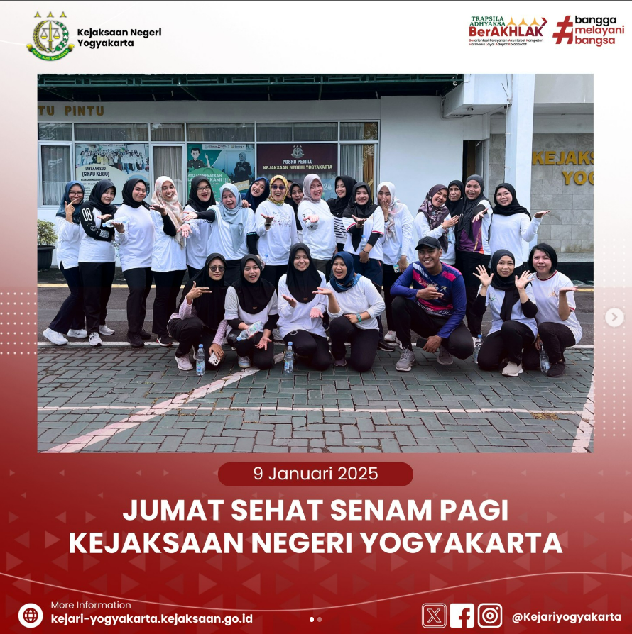 Apel pagi dipimpin langsung oleh Kajari Yogyakarta Gatot Guno Sembodo, S.H., M.H. dan diikuti oleh seluruh jajaran Kejaksaan Negeri Yogyakarta.