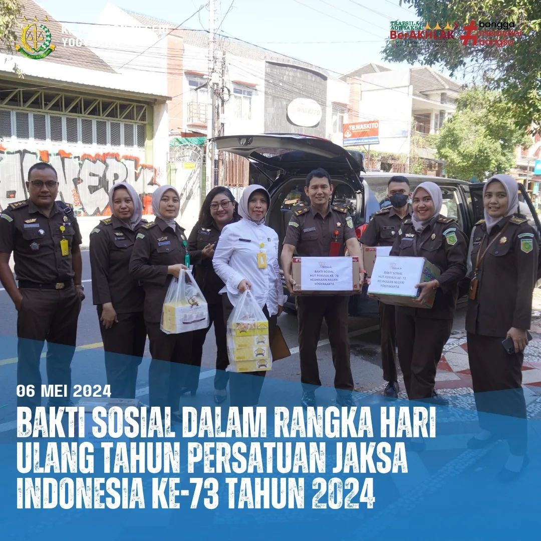 Bakti sosial dalam rangka hari ulang tahun Persatuan Jaksa Indonesia Ke-73 Tahun 2024 di YAKETUNIS (Yayasan Kesejahteraan Tuna Netra Islam) yang di laksanakan pada tanggal 06 Mei 2024.