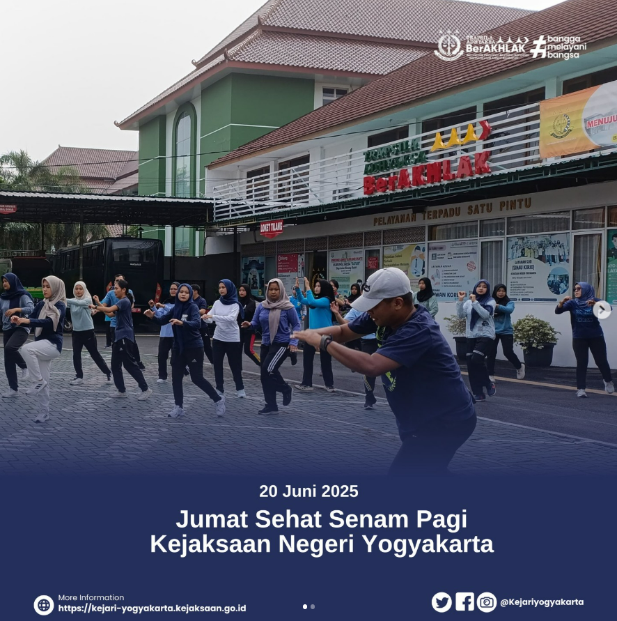 Dalam rangka memperingati Hari Bhakti Adhyaksa ke-64 dan HUT Ikatan Adhyaksa Dharmakarini (IAD) ke-XXIV Tahun 2024 Kejaksaan Negeri Yogyakarta menyelenggarakan serangkaian kegiatan yang bertujuan untuk mempererat hubungan antara pegawai Kejari dan masyarakat sekitar. Kegiatan ini dimulai dengan acara senam bersama di halaman Kantor Kejari Yogyakarta, Jumat (19/7/2024)