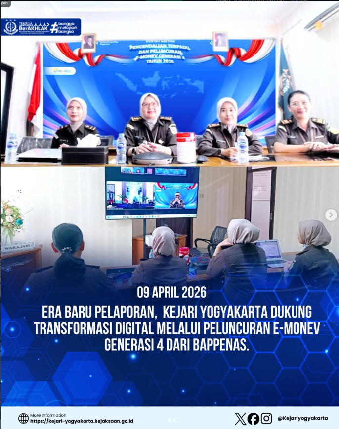 Yogyakarta, 09 April 2026 di laksanakan Kick Off Meeting Pengendalian Terpadu Tahun 2026 dan Peluncuran e-Monev Generasi 4 yang di Ikuti Kasubagbin Madyanti Retno W, S.H.,M.H beserta staff Pembinaan secara daring.