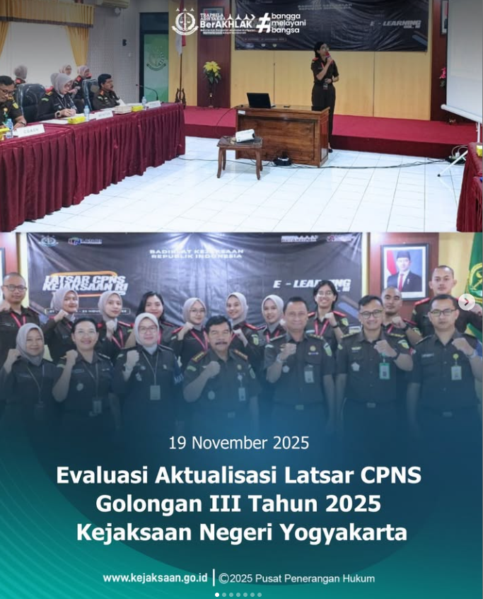 Evaluasi Aktualisasi Latsar CPNS Golongan III Tahun 2025 Kejaksaan Negeri Yogyakarta Berita Berita Kejaksaan Informasi Lainya Informasi Publik 19/11/2025Admin Intelijen