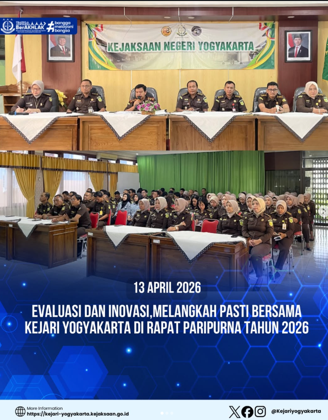 Yogyakarta , 13 April 2026 di laksanakan Rapat Paripurna yang di pimpin langsung Kepala Kejaksaan Negeri Yogyakarta Hartono,S.H..,M.H. , Kasubagbin , Para Kasi dan seluruh pegawai.