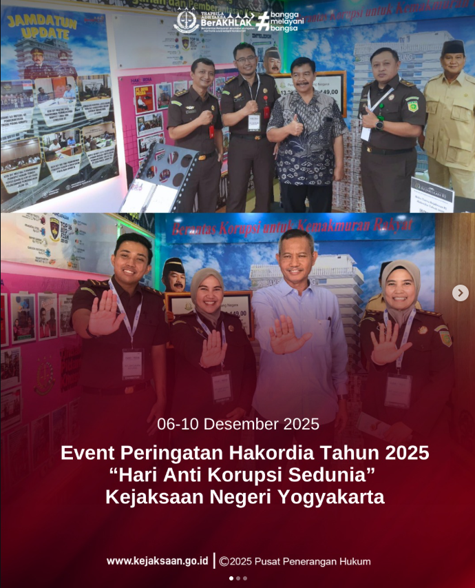 Yogyakarta , 06 – 10 Desember 2025 di laksanakan Event Peringatan Hakordia Tahun 2025 “Hari Anti Korupsi Sedunia” Kejaksaan Negeri Yogyakarta di Malioboro Yopgyakarta dengan peserta seluruh instansi pemerintah.