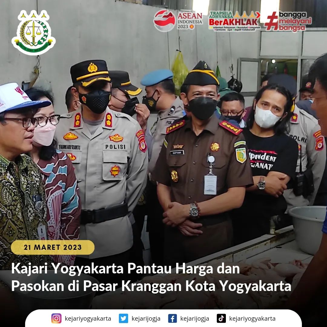 Kepala Kejaksaan Negeri Yogyakarta Saptana Setya Budi, S.H., M.H. bersama Forkopimda melaksanakan Pemantauan Harga dan Pasokan Menjelang Hari Besar Keagamaan Nasional ( HBKN ) Ramadhan dan Idul Fitri Tahun 2023 di Pasar Kranggan Gowongan Jetis Yogyakarta dan CV. Inter Summa, Selasa (21/03/2023)