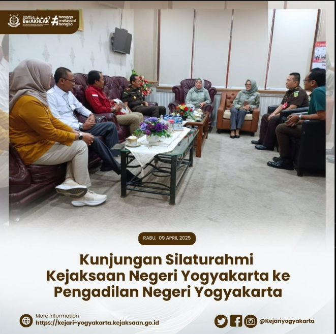 Kedatangan Kajari Yogyakarta disambut langsung oleh Kepala Rutan Klas IIA Yogyakarta Kelik Sulistyanto di ruang kerja Kepala Rutan. Kunjungan ini dalam rangka menjalin silaturahmi dan meningkatkan sinergitas yang sudah terjalin dengan baik selama ini antara Rutan Klas IIA Yogyakarta dengan Kejari Yogyakarta. Selain kunjungan silaturahmi Kajari Yogyakarta didampingi Kepala Rutan berkeliling melihat fasilitas kantor serta layanan yang ada di Rutan Klas IIA Yogyakarta baik layanan kepada tahanan ataupun layanan publik