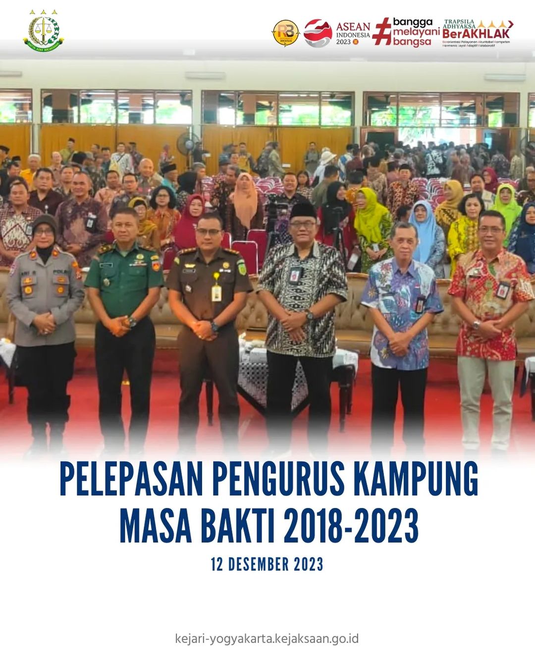Yogayakarta, Selasa 12 Desember 2023, Kepala Kejaksaan Negeri Yogyakarta dalam kesempatan ini diwakili oleh Kepala Seksi Pengelolaan Barang Bukti dan Barang Rampasan (PB3R) Kejari Yogyakarta Surono, S.H., M.H. menghadiri kegiatan pelepasan pengurus kampung masa bakti 2018-2023 dan perkenalan pengurus kampung masa bakti 2024-2028 bertempat di Grha Wana Bhaktiyasa Balaikota Yogyakarta.