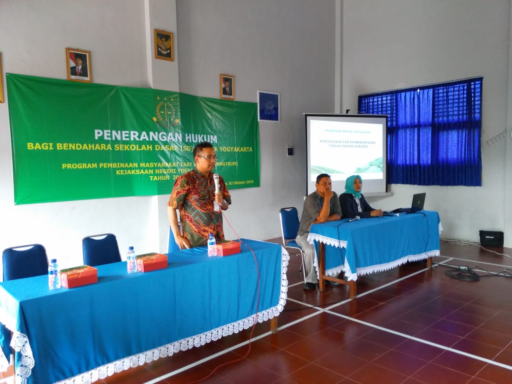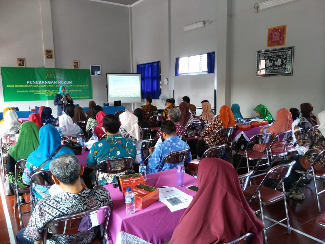 Pada Hari Selasa, tanggal 2 Oktober 2018 bertempat di Aula SD Negeri Lempuyangwangi Kota Yogyakarta telah dilaksanakan acara Penerangan Hukum bagi Bendahara Sekolah Dasar (SD) se-Kota Yogyakarta dengan narasumber Bapak Bambang Tejo Manikmoyo, S.H. (Kasi Intel Kejari Yogyakarta) dan Ibu Semi Hastuti, S.H., M.H. (Jaksa Fungsional Kejari Yogyakarta), acara tersebut dibuka langsung oleh Kasi Intel Kejaksaan Negeri Yogyakarta dan Sekretaris Pada Dinas Pendidikan Kota Yogyakarta, serta dihadiri oleh 50 bendahara SD se-Kota Yogyakarta, adapun materi yang disampaikan yaitu tentang “Pencegahan dan Pemberantasan Tindak Pidana Korupsi”. Program ini bertujuan untuk membekali seluruh bendahara SD se-Kota Yogyakarta agar dalam pengelolaan anggaran sekolah tidak terjadi penyimpangan yang berakibat terjadinya tindak pidana korupsi, serta dapat menambah wawasan terhadap akibat tindak pidana korupsi.
