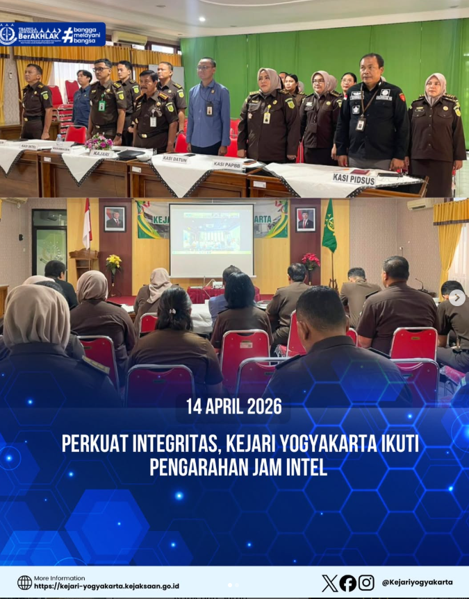Yogyakarta , 14 April 2026 dI laksanakan zoom Perkuat Integritas, Kejari Yogyakarta Ikuti Pengarahan JAM Intel.
