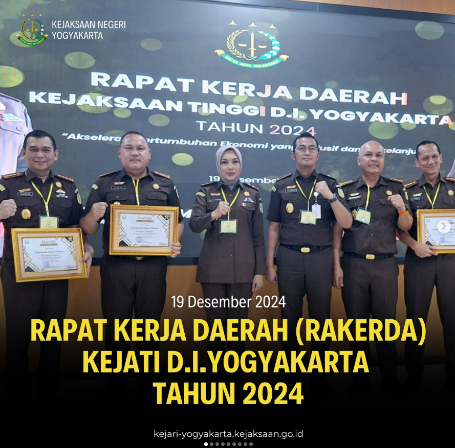 Dalam sesi penghargaan kinerja terbaik Kejaksaan Negeri Yogyakarta mendapat penghargaan :