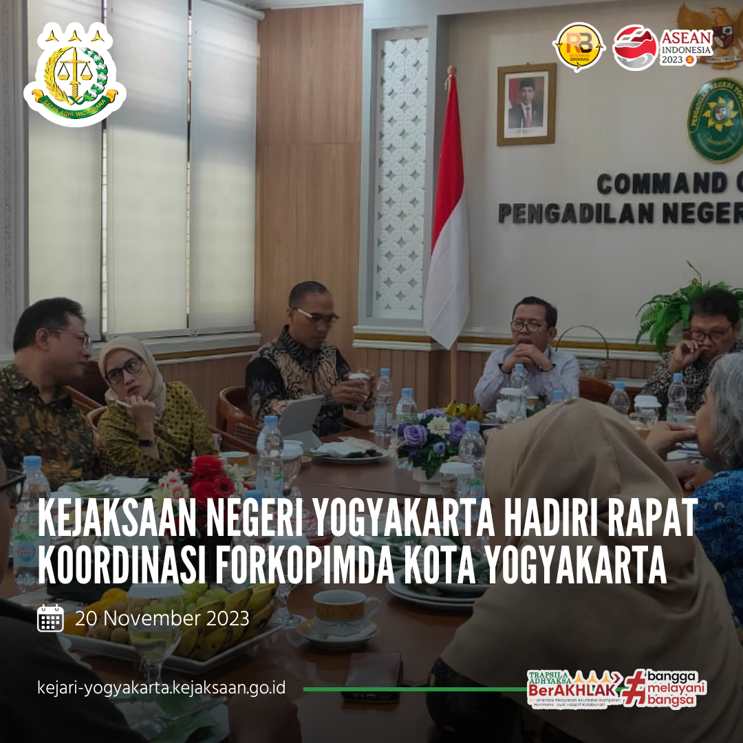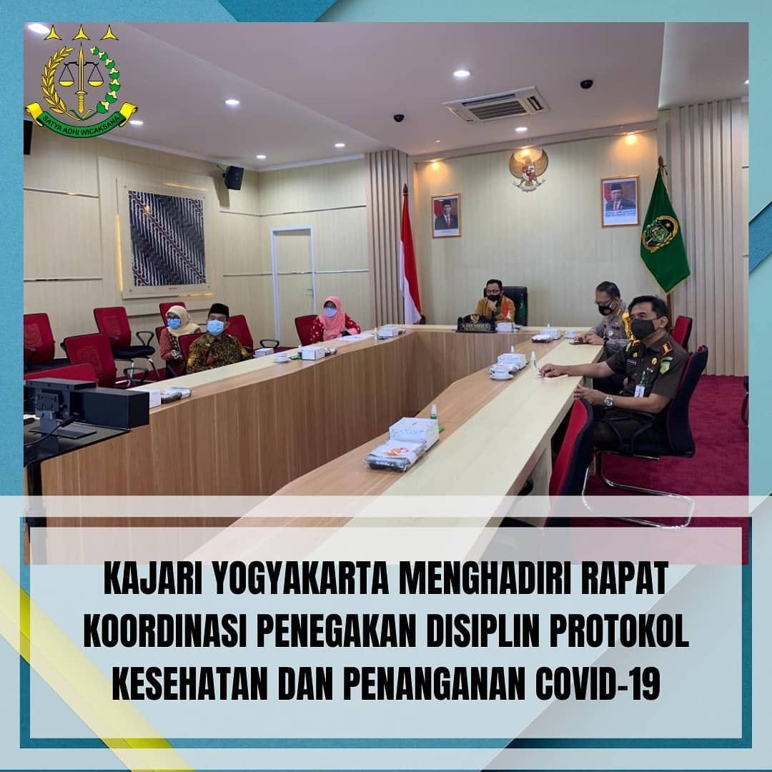 Bertempat di Ruang Yudhistira Pemkot Kota Yogyakarta, Kepala Kejaksaan Negeri Yogyakarta menghadiri rapat koordinasi penegakan disiplin protokol kesehatan dan penanganan Covid-19. Kegiatan tersebut dilaksanakan bersama Forum Komunikasi Pimpinan Daerah di wilayah masing-masing untuk meminimalisir kendala dalam pelaksanaan kegiatan