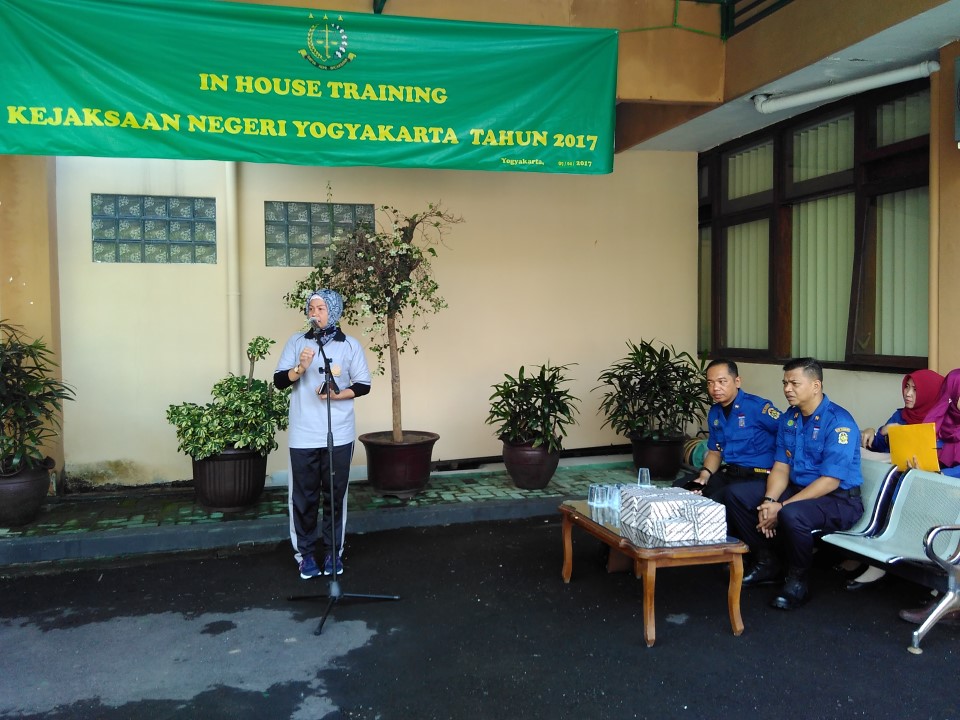 In House Training Kejaksaan Negeri Yogyakarta Tahun 2017 (Sosialisasi Pencegahan & Penanggulangan Bahaya Kebakaran) dimulai pada pukul 09:00 WIB, dibuka oleh pembawa acara, Sambutan Kepala Kejaksaan Negeri Yogyakarta yang diwakili oleh Kasubbag Pembinaan dan dilanjutkan dengan Sambutan oleh Kepala Dinas Pemadam Kebakaran Kota Yogyakarta. Setelah itu penyampaian materi dan demo pemadam kebakaran oleh Tim dari Pemadam Kebakaran Kota Yogyakarta. Dan dilanjutkan praktek oleh pegawai dan Scurity Kejaksaan Negeri Yogyakarta memadamkan api dengan selimut dan alat pemadam kebakaran.